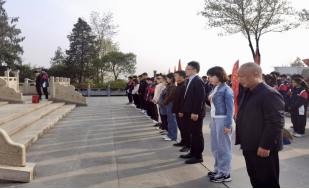 在为英雄烈士默哀后,全体师生向烈士纪念碑敬献花圈、花环,并缓步绕行、瞻仰纪念碑,全体师生怀着崇高的敬意祭奠长眠于此的英烈。