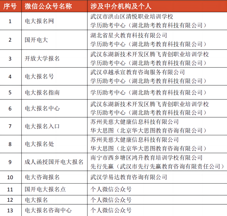 以下为涉及冒用我校名义进行招生宣传的微信公众号、机构及个人(持续更新):