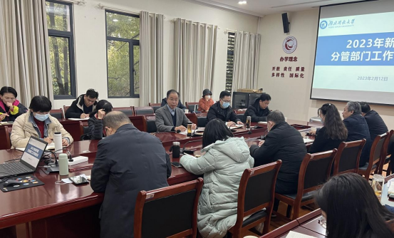 本网讯(通讯员 陈佳 文/图)2月12日上午,副校长汤春来主持召开2023年新学期分管部门工作部署会,教务处、人事处、基建处、导学中心、开放教育学院﹒培训学院、社区教育学院、终身教育研究院、学分银行管理中心、教育技术中心部门领导班子成员参加会议。