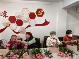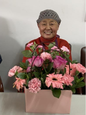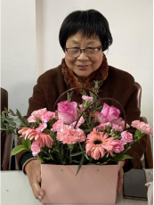 党员活动室内,离退休女同志们认真地聆听着花艺师对花卉选择、色彩搭配、花枝修剪以及造型设计等知识的讲解,边学边做,边说边笑……一支支康乃馨、幸福花、粉玫瑰、尤加利……经过细致修剪、精心构思、巧妙搭配,逐渐形成了一件件错落有致、色彩鲜艳、造型新颖的插花作品。大家热烈地交流着,兴致勃勃地创作着,看着自己亲手制作出来的独具匠心插花作品,脸上洋溢出幸福灿烂的笑容。