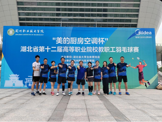 本网讯(通讯员 蔡璇/文 王军力/图)6月2日至3日,湖北省第十二届高等职业院校教职工羽毛球赛在荆州职业技术学院举行。我校代表队由副校长宋移安带领10名教职工组成,经过奋力拼博,我校荣获“优秀组织奖”。