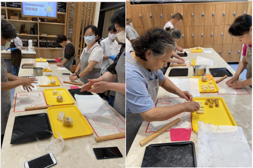 在皇冠幸福里梦工厂,烘焙老师讲授了烘焙相关理论知识,讲解了制作蛋黄酥所需的材料、工具及注意事项,并现场进行指导制作。大家仔细倾听,认真揣摩,在老师的指导下,大家积极动手,热烈讨论,活动现场传出阵阵爽朗的笑声。