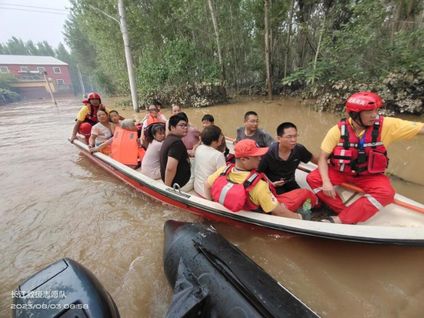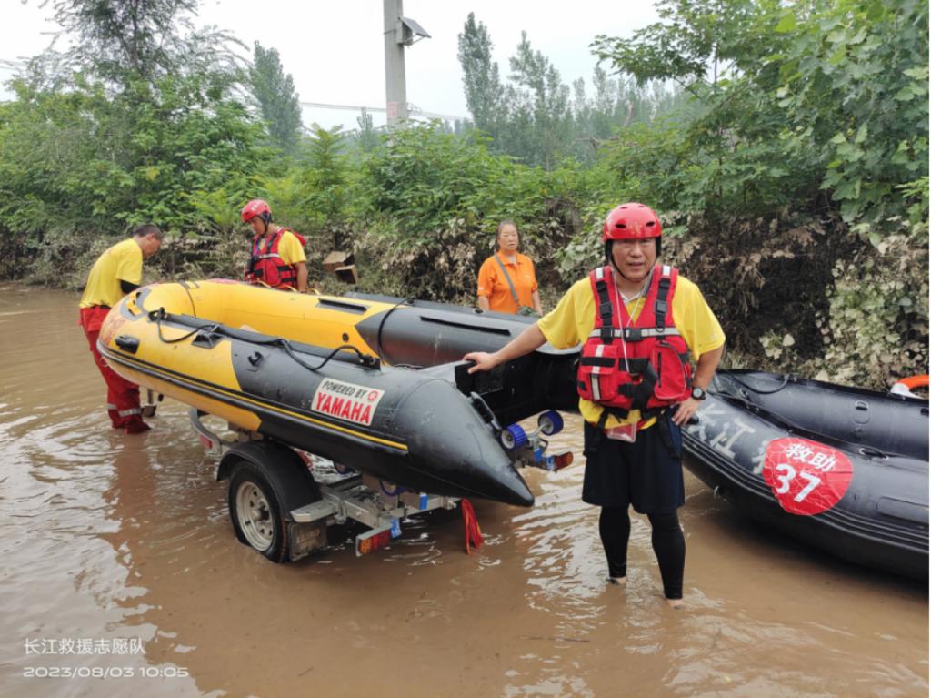 8月2日下午,他们分乘三台车,携带四艘冲锋舟,从武汉出发,历经14小时的长途跋涉,于3日凌晨到达涿州,来不及休息就接到通知,码头镇孟家街村为保周边泄洪,目前水深已达5.6米,村里700多户人家,近1000余人需紧急救援。救援队随即赶赴孟家街村,看着肆虐的洪水,他们不顾生命危险,扛着疲惫,驾着冲锋舟,运送救灾物资、转移受灾群众,经过六小时的救援,共运送救灾物资近5吨,转移灾民200余人。四天三夜,辗转多地,他们从未离开救灾第一线,始终与洪水顽强斗争,为夺取防汛救灾工作的全面胜利尽自己的一份力。
