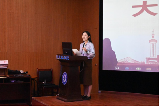 大学生记者团团长李欣茹作代表发言,她表示记者团的成立离不开所有人的努力和汗水,更离不开学校和在座所有老师的支持。相信未来在老师的指导和记者团全体成员的共同努力下,记者团将勇于挑战、奋发作为。