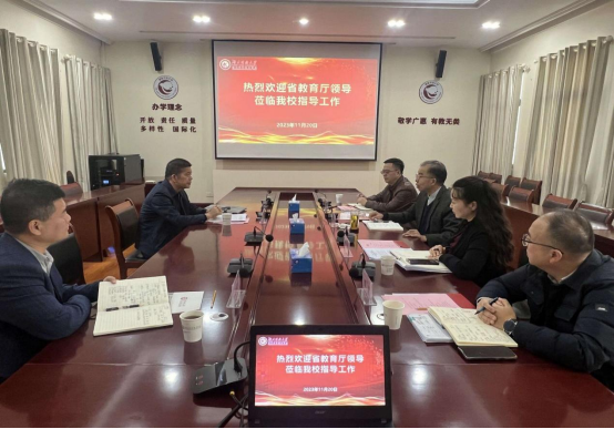 本网讯(通讯员 陈佳 文/图)11月20日,湖北省教育厅职业教育与成人教育处一级调研员杨乾秋来学校调研指导,学校党委常委、副校长汤春来陪同调研。