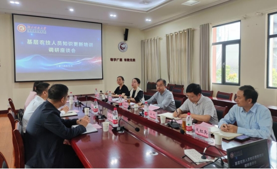 本次调研,以发展新质生产力,提升农业科技人员专业素质和服务水平,以适应我省农业高质量发展的需要为主要目的,围绕农业基层农技人员知识更新培训展开实地考察和经验交流。座谈会上,培训学院从学校服务“三农”的历史沉淀、基层农技推广人员知识更新培训的成效和优势、培训课程设置及实训基地情况以及今后努力的方向四个方面进行了专题汇报。教育技术中心、工商管理学院和教务处分别从数字赋能农业农村发展、数字农业培训实施、培训的师资以及教学点基地建设等方面与省农业农村厅调研组的专家进行了交流和探讨。