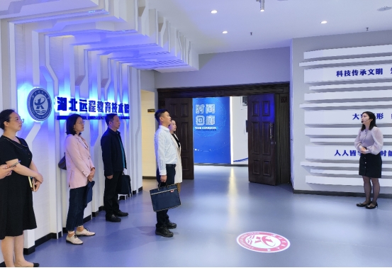 会前,廖世勇一行参观了湖北远程教育技术馆、学分银行、教育技术中心全景演播室。