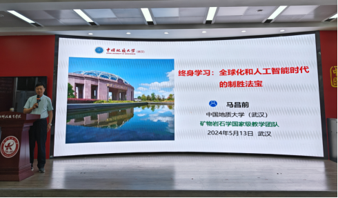 马昌前以习近平总书记在党的二十大报告中提出的“推进教育数字化,建设全民终身学习的学习型社会、学习型大国”开场,充分立足我校办学特色,紧扣当前国际科技与社会发展前沿,勉励学生们把个人理想融入民族复兴伟业,与时代发展同频。他着重分析了终身学习的益处、途径和障碍,强调在全球化和人工智能时代,终身学习将会是个人和社会进步的关键。