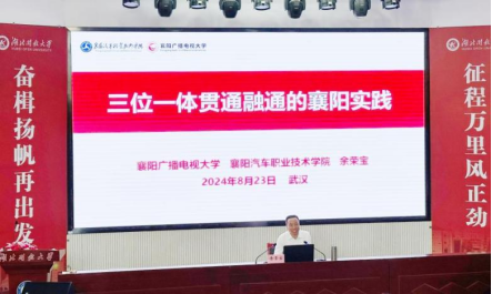 襄阳广播电视大学党委书记余荣宝作《三位一体贯通融通的襄阳实践》讲座,全面展示了襄阳电大依托体系建设,在职业教育、开放教育、继续(社区)教育三类教育类型上贯通融通改革的尝试,实现教育提质的过程,为教育改革提供了新视角,也为教育资源的整合与创新提供了有益参考。