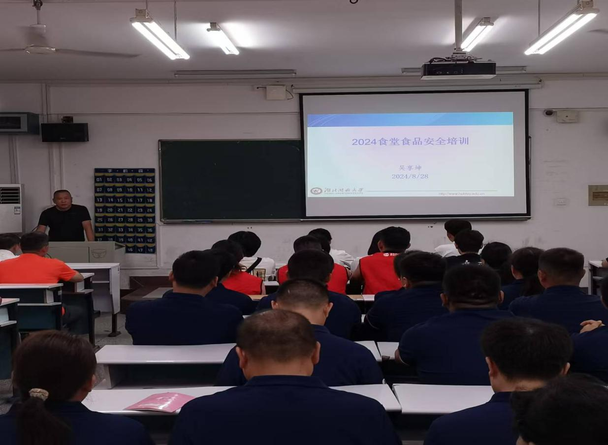 饮食服务中心主任吴享坤从食品安全管理、食品安全风险识别、食堂设施与设备维护、应急预案与事故处理、食品安全三大禁令、下一步工作计划六个方面作了专题培训。他表示,全体食堂从业人员要高度重视食品安全工作,切实提高政治站位,强化意识形态管理,认真履行岗位责任,筑牢师生食品安全防线,确保师生舌尖上安全。