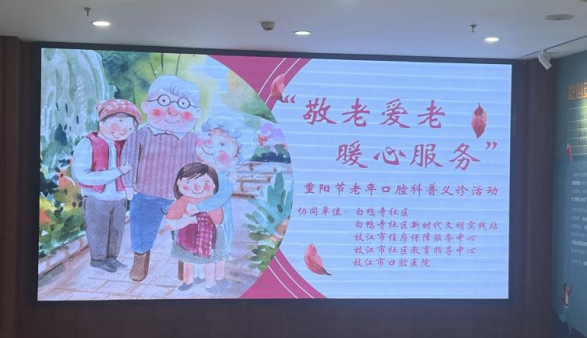 枝江市社区教育指导中心、白鸭寺社区、白鸭寺社区新时代文明实践站、枝江市任房保障服务中心、枝江市口腔医院联合开展了重阳节老年口腔科普义诊活动,提供敬老爱老暖心服务。