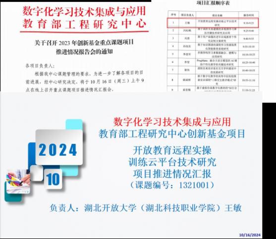 本网讯(通讯员 周燕/文 王敏/图)10月16日,数字化学习技术集成与应用教育部工程研究中心组织召开2023年创新基金重点课题项目中期汇报会,2023年获批的10项重点课题的项目负责人参加会议,我校软件工程学院教师王敏就主持课题的推进情况进行了汇报。