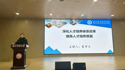 会上,副校长夏学文以“深化人才培养体系改革 提高人才培养质量”为题为全体教师作职业教育教学业务专题培训。他对我校在第一轮“双高计划”建设中取得的优异成绩给予高度肯定,并针对下一轮“新双高”建设任务提出明确要求。他表示,“双高计划”事关学校高质量发展全局,为迎接“新一轮”双高建设工作,我校将重点推进深化职业教育人才培养体系改革工作,主动适应职业教育发展的新要求、新变化,优化专业群布局,做好群内专业优化调整、改造和升级,推动专业建设快速响应产业变革需求,加强服务国家战略和区域经济发展需求的能力。