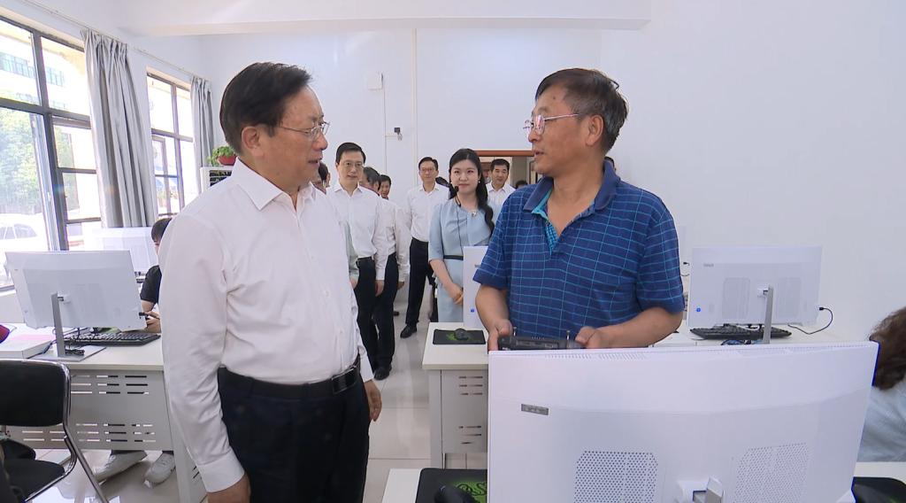 2025年5月7日上午,省委书记、省人大常委会主任王忠林到湖北开放大学调研,深入无人机模拟操控、声乐、书画、剪纸艺术等教室察看现场教学,与老年学员、非遗传承人亲切交谈,对学校丰富的教学内容和多样化、趣味化、智能化的教学方式给予肯定。