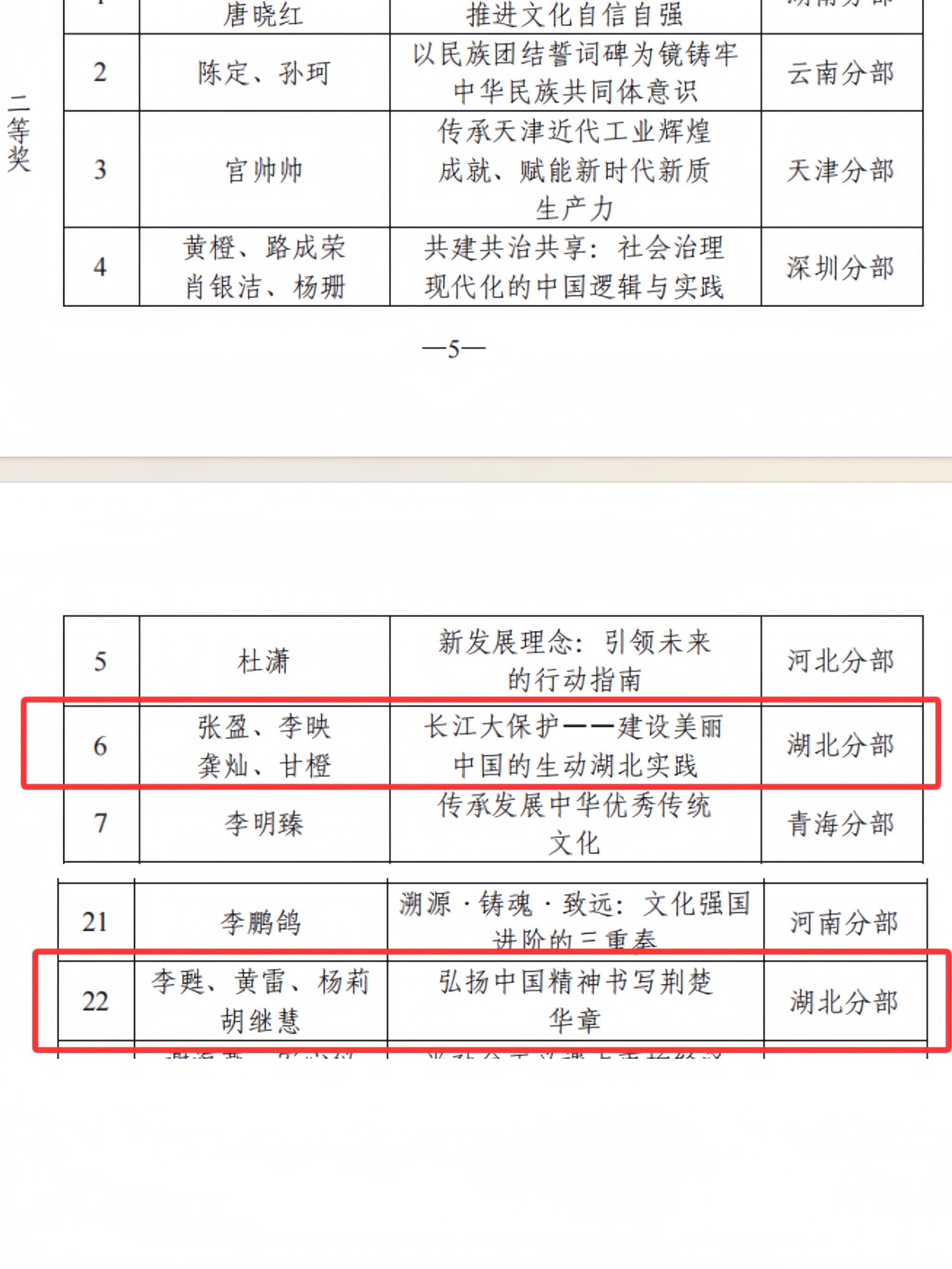 李甦、黄雷、杨莉、胡继慧团队,《弘扬中国精神 书写荆楚华章》
