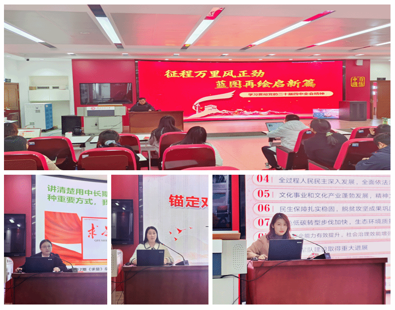 本次培训聚焦“推进党的二十届四中全会精神融入思政课教学”主题,精心设置专题解读与课程融合两个板块。马克思主义学院刘源泉博士作《征程万里风正劲 蓝图再绘启新篇——学习贯彻党的二十届四中全会精神》专题报告,系统梳理全会的重大意义、战略部署和实践任务,他表示要从“承前启后”的时间坐标、“高质量发展”的主题主线、“新质生产力”的战略支撑以及“投资于人”“数智化转型”等新表述中把握新时代新征程党和国家事业发展的新要求,为教师准确理解、深度融入全会精神夯实理论根基。随后,三位一线骨干教师结合各自授课课程,分享了将党的二十届四中全会精神融入课堂教学的具体思路与实践案例。张盈老师围绕“为何融”“融什么”“如何融”三个问题展开分享,表示要将党的二十届四中全会精神融入习近平新时代中国特色社会主义思想概论课程教学,要求思政教师在学深悟透内在逻辑的基础上,把握好融入的结合点、对比点,融入过程中还要做好“加减法”,注意融入的高度深度厚度和温度;万若冰老师以思想道德与法律课程为载体,讲解了如何将全会精神与道德教育、法治教育有机结合,引导学生强化责任担当、提升法治素养;龚灿老师则聚焦毛泽东思想和中国特色社会主义理论体系概论课程,以“邓小平理论”章节为例,通过纵向比较展现中国共产党接续奋斗、科学谋划的治国理政智慧,引导学生在历史脉络中坚定“四个自信”、厚植制度认同,激发勇担时代使命的历史自觉与行动自觉。