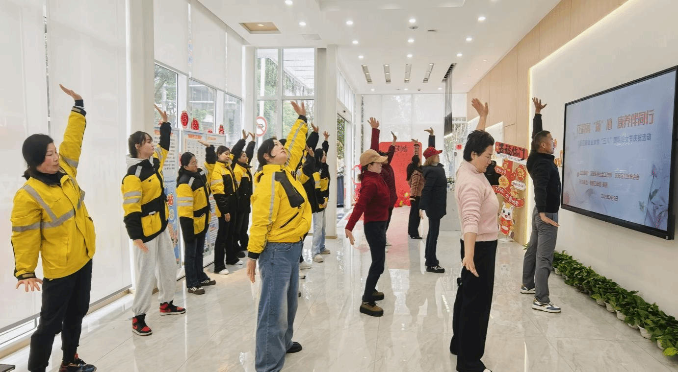 3月6日,在“三八”国际妇女节来临前夕,项目首场活动于汉阳区新就业群体党群活动中心正式启动。我校联合汉阳区妇联,为20余名快递员、外卖配送员等新就业形态女性劳动者送上专属节日关怀。活动邀请中南民族大学汪如锋教授讲授传统健身功法《八段锦》,课程以“内外兼修、动静相宜”为核心理念,引导学员在呼吸节奏与肢体动作的协调配合中舒展筋骨、舒缓压力,缓解长期高强度工作带来的身体疲劳。参与活动的学员纷纷表示,“这堂课让我们暂时放慢了忙碌的工作节奏,真切感受到了传统养生文化的温度与力量”。