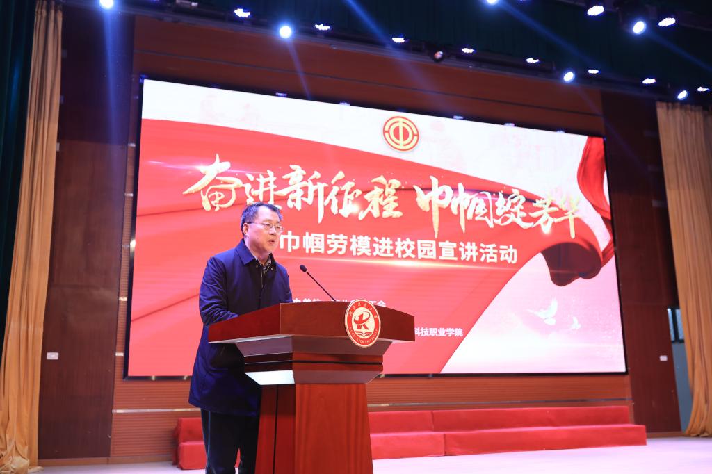 本网讯(通讯员 沈雁君/文 刘捷 李贺刚/图)神州自古赞巾帼,美誉娥眉响颂歌。3月21日,以“奋进新征程 巾帼绽芳华”为主题的巾帼劳模进校园宣讲活动在湖北开放大学举行。湖北开放大学党委书记刘义、党委常委张化斌,省总工会党组成员、副主席刘建宇等出席活动并分别致辞。活动邀请了全国五一劳动奖章获得者王艳鸽,党的二十大代表、全国劳动模范周怡,党的二十大代表、全国劳动模范姚婕,全国五一巾帼标兵、全国“城乡社区抗疫巾帼先锋” 倪娟四位巾帼劳模走进校园,以“文艺+宣讲”的形式,为当代大学生上了一节别开生面的“大思政课”。