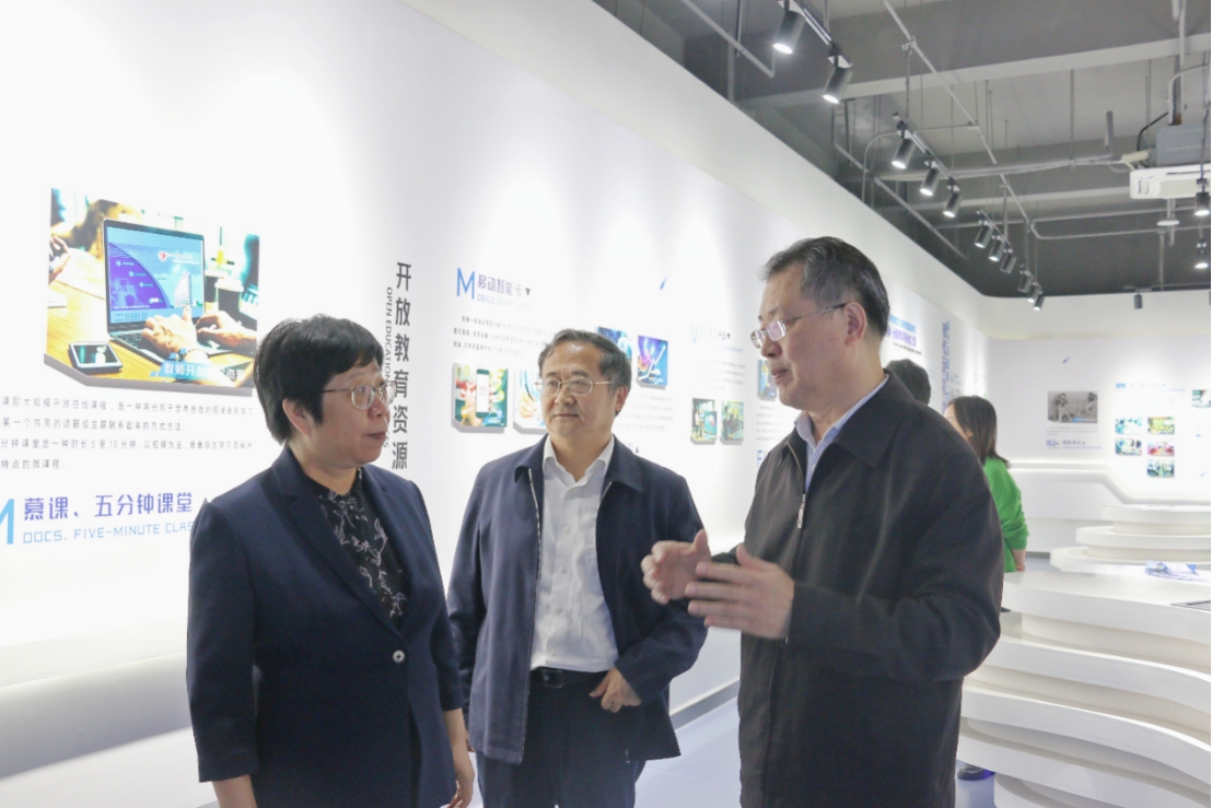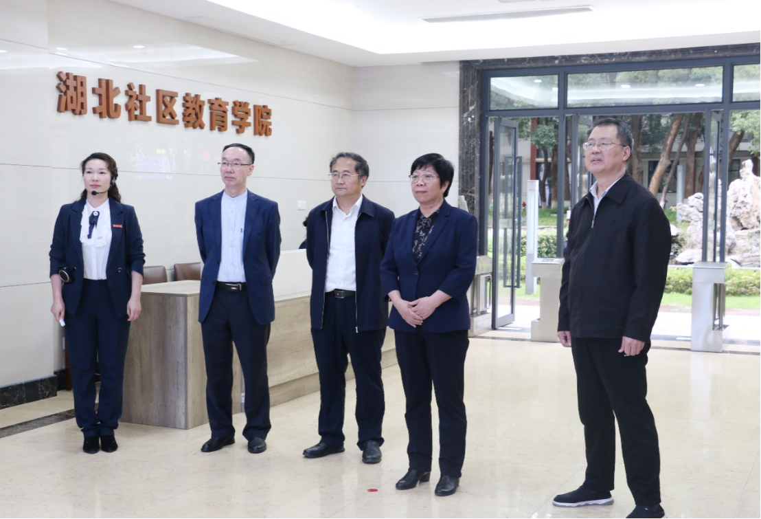周静一行先后到学校湖北远程教育技术馆、湖北省教育学分银行、荆楚学习广场、人物形象设计专业国家级实训基地和湖北省社区教育指导中心等地进行了深入调研,并听取了学校关于开放教育、职业教育、社区教育及老年教育相关情况汇报。