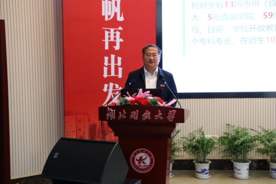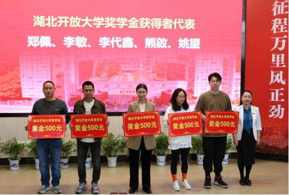 会上,导学中心桂高山主任从国家级、省级、国家开放大学三个层面通报了2022-2023年度师生获奖情况,与会领导分别为获得国家开放大学汉语言专业优秀论文一等奖的闫瑞雨同学、中国国际“互联网+”大赛国赛铜奖、省赛金奖获得者谷乾坤同学,以及获得国家开放大学、湖北开放大学奖学金的学生代表颁奖。