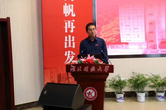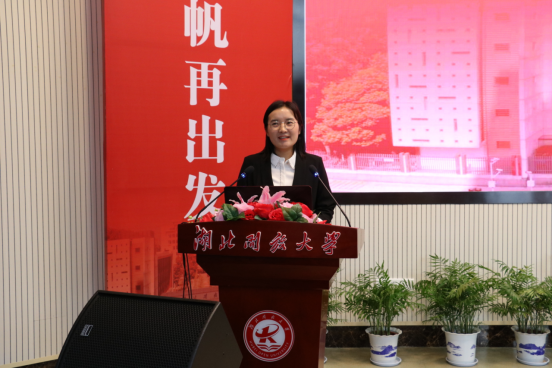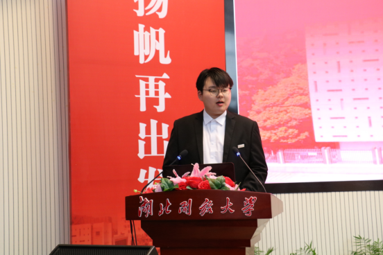 优秀毕业生代表、十堰电大丹江口分校2019秋季学期汉语言文学专业毕业生、丹江口市机关事务服务中心优秀员工闫瑞雨校友与大家分享自己入学来的思想进步与个人成长,并从如何克服工学矛盾,提高学习自主性;坚持学以致用,激发工作积极性;努力不留遗憾,充分发挥能动性三个方面,与全体新生介绍了自己的学习经验,同时也表达了砥砺前行、继续奋斗的决心。