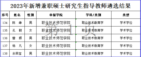 经教师报名、学校遴选推荐、湖北工业大学审核确认并颁发聘书,我校终身教育研究院陈峥、孔靓,软件工程学院曾辉、杨凡,襄阳广播电视大学余荣宝获聘为湖北工业大学职业技术教育学学术学位硕士研究生指导教师(兼职),聘期三年,自2023年6月起至2026年6月止。