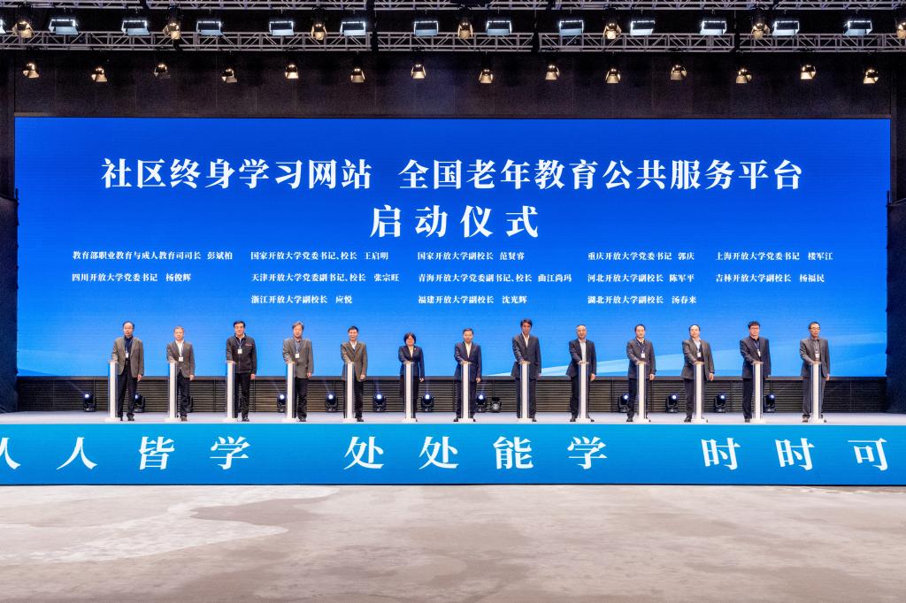 国家开放大学党委书记、校长王启明介绍服务全民终身学习情况,与10家已经互联互通的省级开放大学共同启动“社区教育终身学习网站”“全国老年教育公共服务平台”,我校作为代表之一参加启动仪式。