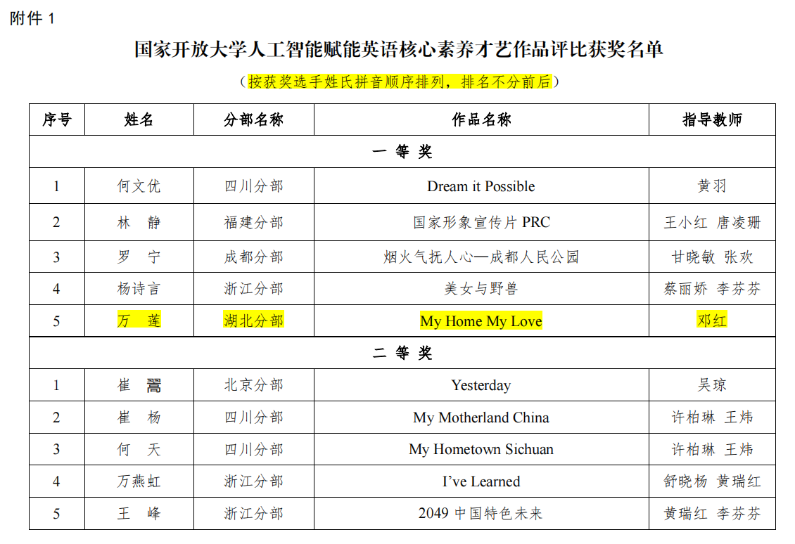 国家开放大学英语才艺比赛获奖名单