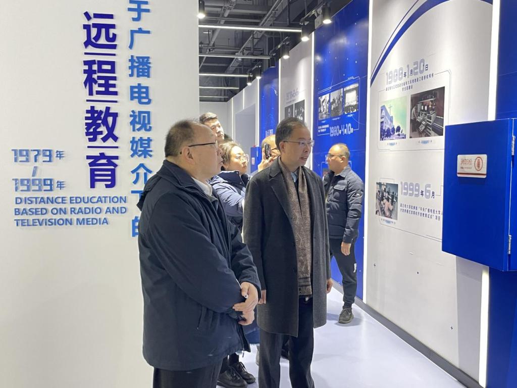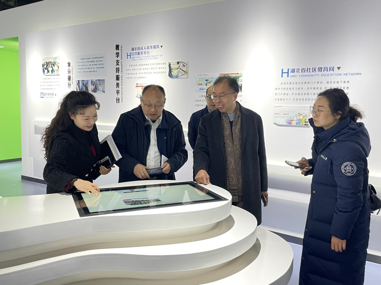 朱耀垠一行先后参观了学校湖北远程教育技术馆、学分银行管理中心、荆楚学习广场、社区教育学院等地,通过听取介绍、实地查看、座谈交流等进行深入调研。