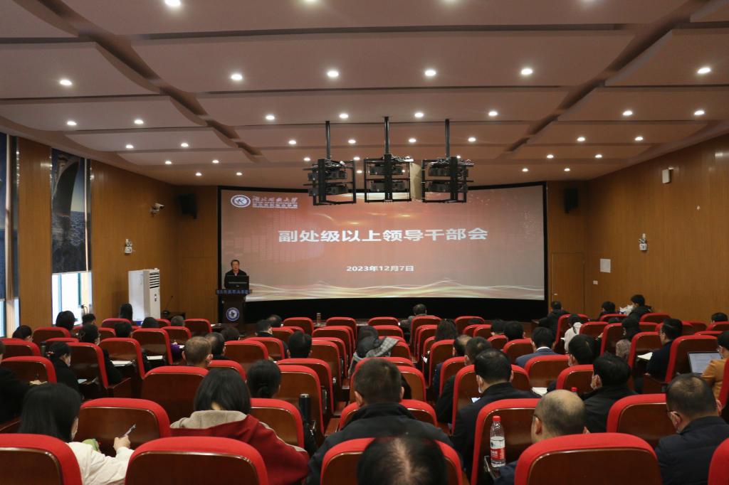 本报讯(通讯员 李玲芳/文 毕小艳/图)12月7日上午,学校召开副处级以上领导干部会,会议由校党委书记刘义主持,校长钟毓宁,副校长宋移安、汤春来,党委常委张化斌出席,副处级以上领导干部参加。