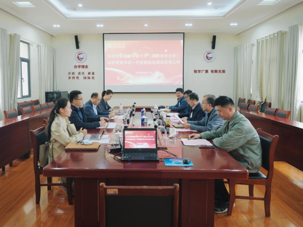 本网讯(通讯员 王欣/文 刘捷 徐敏 谢宏莲/图)4月11日,国家开放大学(国家老年大学)党委副书记徐明军一行来校调研老年教育工作。校长钟毓宁、党委副书记何平、副校长汤春来陪同调研考察。