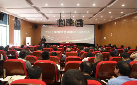 本网讯(通讯员 夏婷/文 刘捷/图)4月18日上午,学校召开2024年工作目标责任书签订会,会议由党委书记刘义主持,校长钟毓宁出席会议并讲话,全体校领导、副处级以上领导干部参会。
