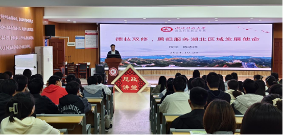 本网讯(通讯员 方瑾/文 欧阳简娣 李贺刚 方瑾/图)10月29日上午在思政讲堂,校长陈志祥以《德技双修,勇担服务湖北区域发展使命》为主题,面对全省开放教育体系,通过线上线下相结合的方式,为全校师生上了一堂生动而深刻的“开学第一课”。