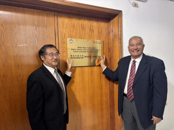 在埃及苏伊士运河大学,代表团深入调研了苏伊士运河大学的职业教育,详细了解了该校的教育资源、学生需求以及文化特色。苏伊士运河大学校长纳塞尔·曼杜尔先生表达了与中国高校加强交流合作的强烈愿望。他表示,中埃两国人民友好交往追溯久远,希望双方能够积极探索师生互访项目,围绕我校人工智能、软件技术等优势专业,开展“中文+职业技能”教育,期待通过教育与文化的交流互鉴,增进两校之间的友谊与合作。随后,双方就埃及的首家海外学习(培训)中心的建立进行了全方位、多层次的诚挚洽谈,成功挂牌我校埃及学习(培训)中心。