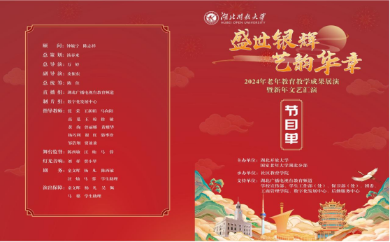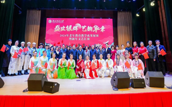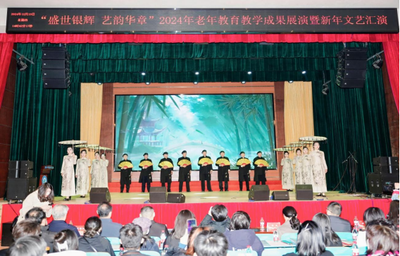 本网讯(通讯员 陈佳 刘样 文/图)今年,我校获批全国“老年大学特色建设项目实验校”,工作实践入选全国“老年教育优秀案例”。为展示老年师生乐学风采与教学质量成效,在全省体系老年教育体系发挥示范引领凝聚合力作用,12月19日下午,我校举办了“盛世银辉 艺韵华章”2024年老年教育教学成果展演暨新年文艺汇演。展演由社区教育学院承办,采取线上与现场相结合的形式。