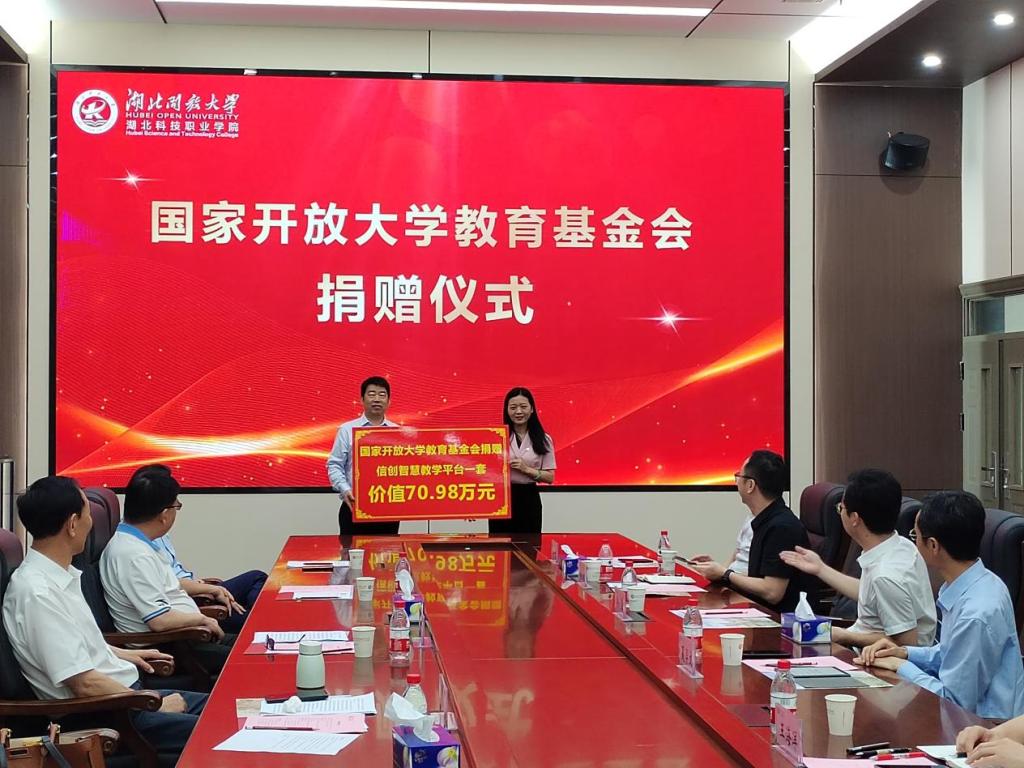 夏学文对国家开放大学教育基金会一行来校调研表示热烈欢迎,对基金会的捐赠表示诚挚感谢,并详细介绍了学校基本情况、开放教育与职业教育融合发展成效、学校产教融合特色及标志性成果等。他希望通过此次调研和捐赠活动,我校与国家开放大学教育基金会能够进一步深入合作,共同推进具有开大特色的人才培养工作。
