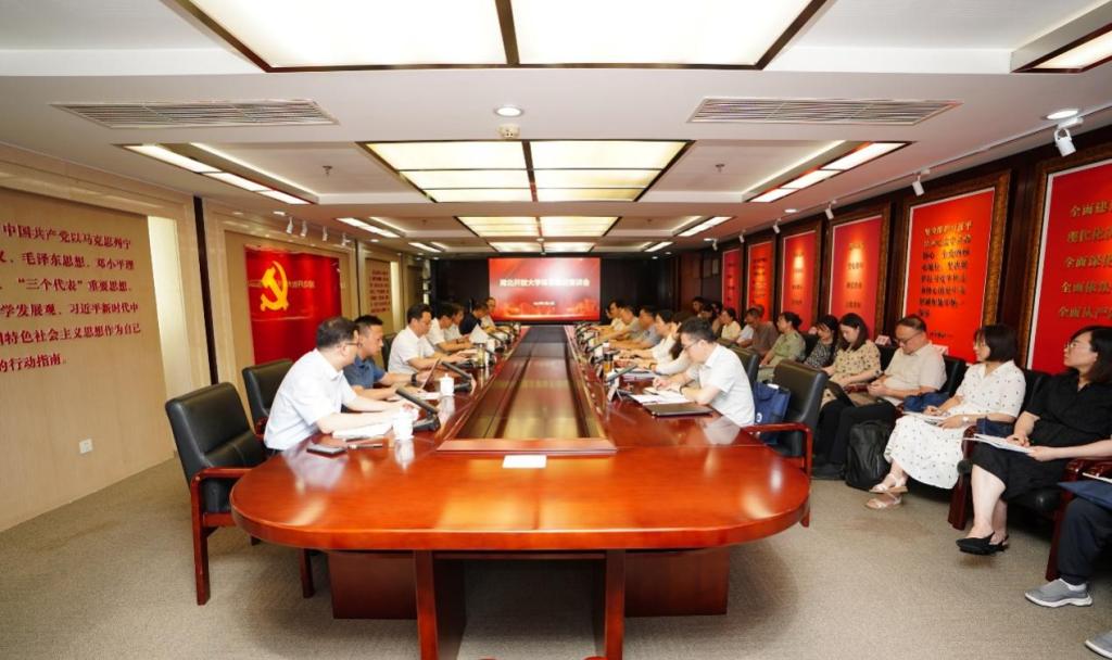 本网讯(通讯员 李影丹 文/图)7月18日,我校以“开放大学高质量发展”为主题的体系建设座谈会在国家开放大学举办。会议由我校党委书记钟毓宁主持,校长陈志祥、体系代表及省校相关职能部门负责人参会并作工作汇报,国家开放大学党委书记王启明出席会议并作指导讲话,国家开放大学党政办、国开在线、改革发展处等相关部门负责人参加会议。