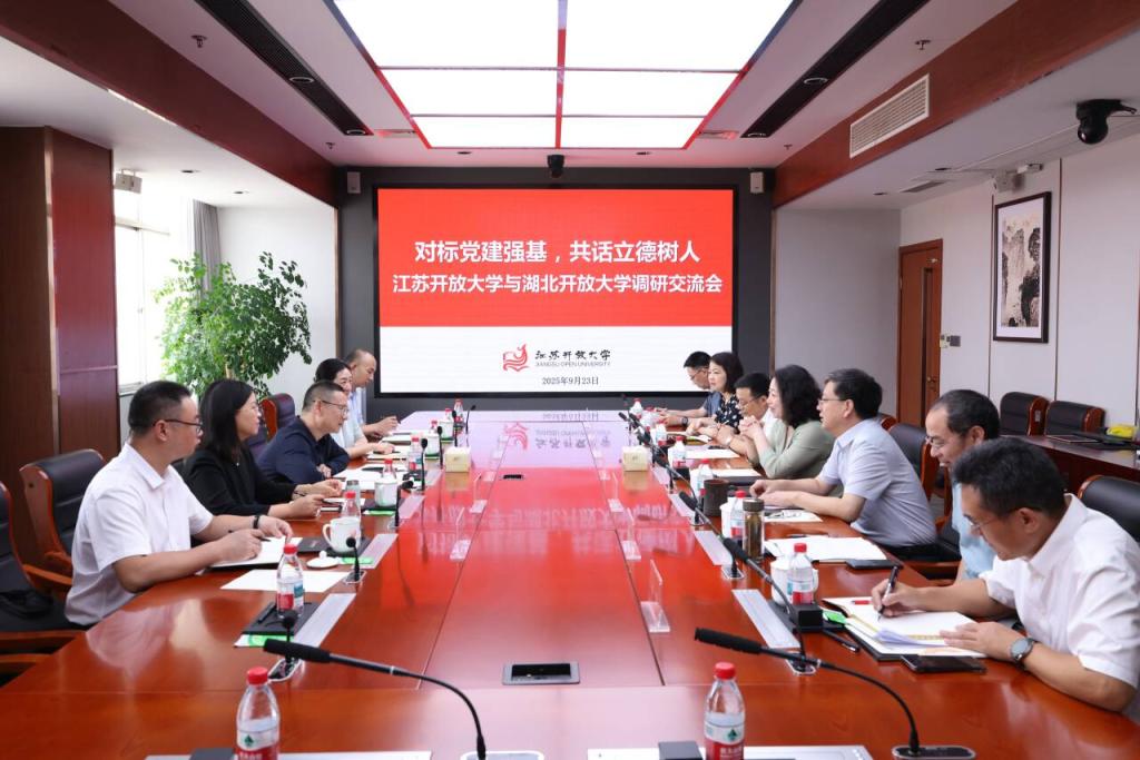 江苏开放大学以数字党建创新令人瞩目。调研组参观了江苏省终身教育学分银行和资源建设中心,其“518智慧党建平台”“云上组织生活”“ai博士微课堂”“产业链党建”等创新模式令人印象深刻。该校通过将党组织建在产业链上,与社区、地方开大联建共建,形成了“组织共建、资源共享、发展共赢”的党建新生态。座谈会上,双方就党建、数智化转型、教学科研、开放大学体系建设等方面进行了深入交流。