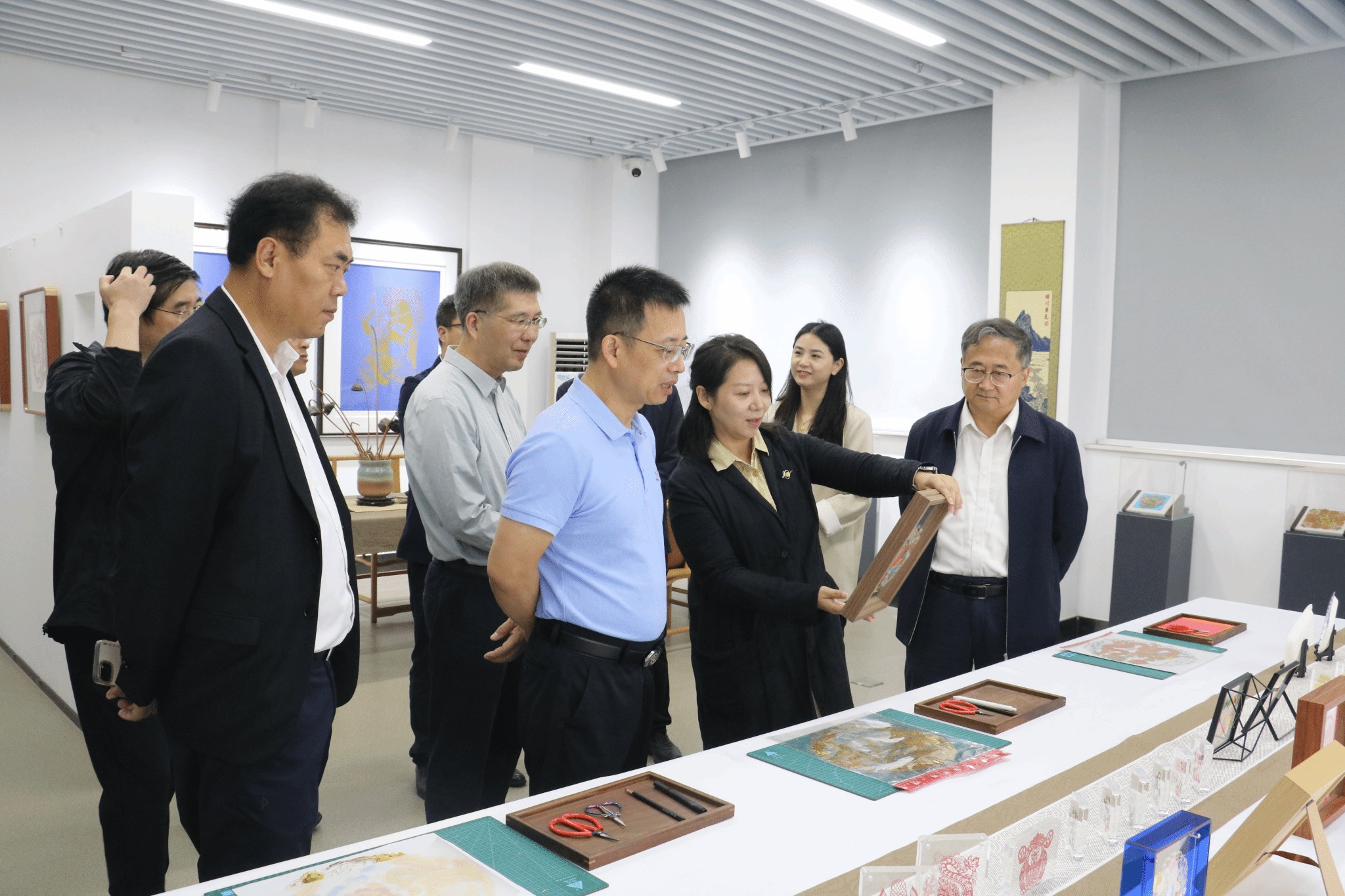 王正东一行在钟毓宁陪同下实地参观了学校终身教育馆、荆楚非遗文化职教传承研究中心、社区教育学院等场所。