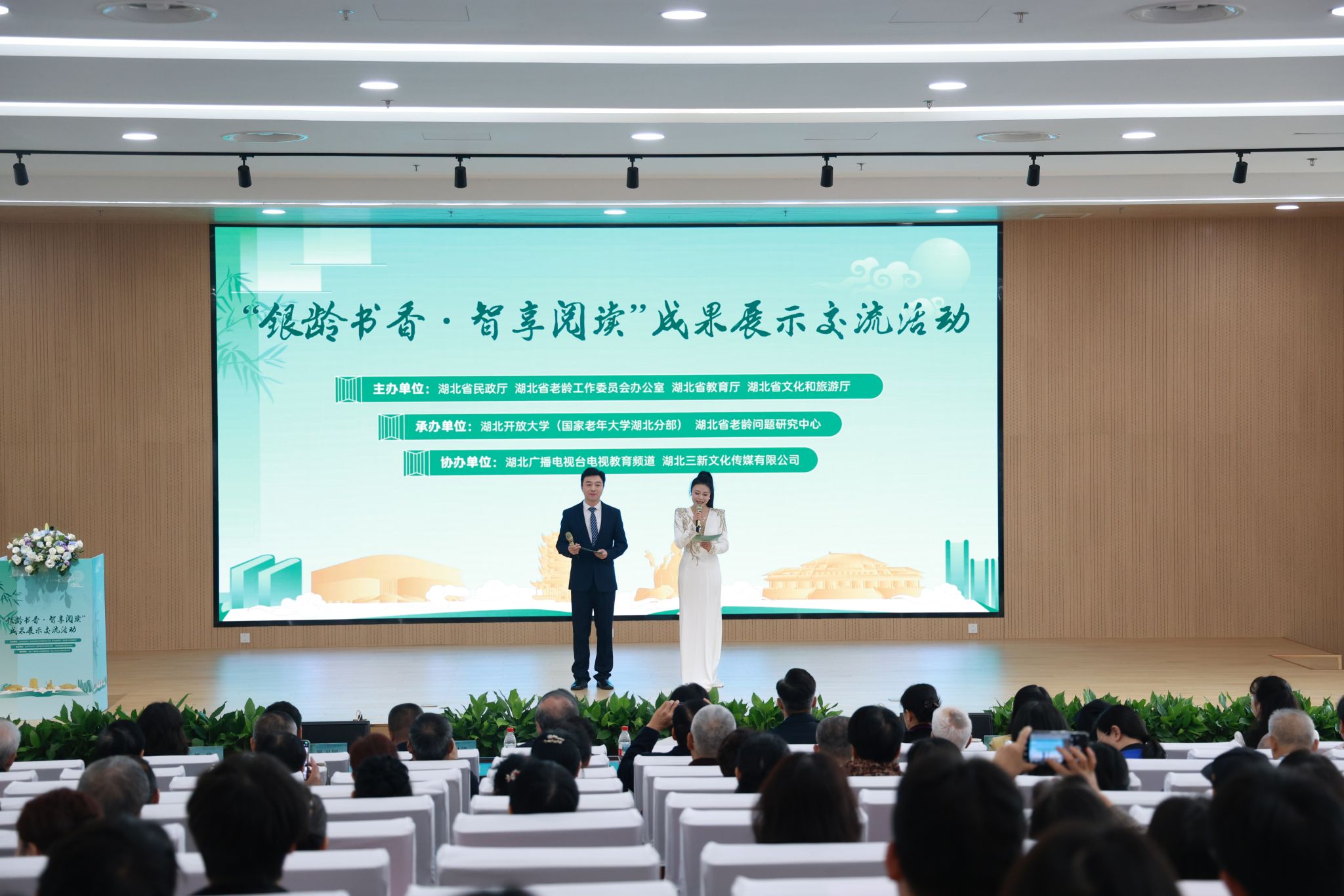 本网讯(通讯员 杨凡/文 刘样 李贺刚 大学生记者:方靖/图)由湖北省教育厅、湖北省民政厅、湖北省老龄工作委员会办公室、湖北省文化和旅游厅联合主办,湖北开放大学和湖北省老龄问题研究中心承办的“银龄书香·智享阅读”活动自开展以来,通过启动仪式、营造氛围、线上读书、征集作品等系列活动,有效激发了湖北省老年人的阅读热情,积累了丰富的阅读成果。10月27日,为期半年的活动以成果展示交流形式在湖北开放大学圆满落幕。省民政厅、省老龄问题研究中心、省教育厅、省文旅厅、湖北开放大学相关领导以及征文类、诵读类获奖作者代表,老年读者代表及新闻媒体代表共百余人现场见证。活动用视频回顾、作品集锦、现场朗诵、颁发证书、代表发言等多种形式,全方位呈现了本次活动的丰富成果,展现了当代老年阅读者的精神风貌。