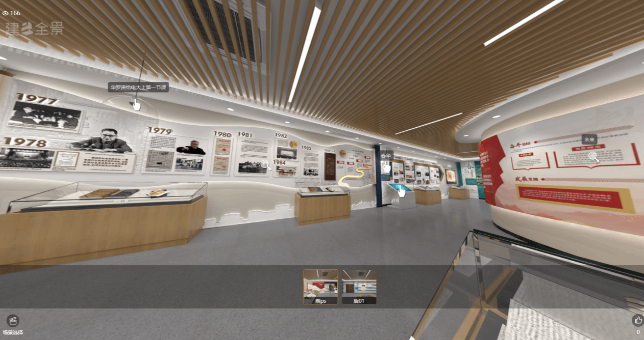 校史馆项目是学校2025年度重点工作之一,自7月初正式启动,同步建设线上VR馆、线下实体馆。创意主题是“春天的故事”,寓意开放大学在春天中走来,也必将奔赴下一个春天。线下展馆按顺时针设计参观动线,分“序篇、历史篇、未来篇”三个篇章;其中的历史篇,按“春至、春华、春韵、春潮”四个版块依次布设,既有陈列,也有文图,还有相关数字化设备,设计逻辑是将学校从萌芽到壮大的铿锵足迹转化为数字光影,让时光可触摸,让历史会说话,让文化能流淌,让精神永传承。