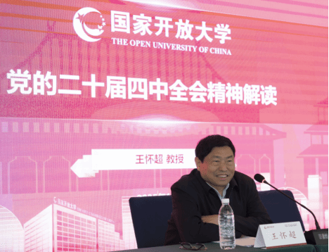 开幕式后,中共中央党校(国家行政学院)原副教育长、国家开放大学特聘教授王怀超以《党的二十届四中全会精神解读》为题作专题讲座,从指导方针、理论要点、发展目标到战略举措,进行了系统而权威的解读。整场报告高屋建瓴、深入浅出,为与会代表准确把握全会核心要义、推动党的创新理论“带着热气”进课堂、进头脑提供了重要的思想罗盘与行动指引。随后,国家开放大学、湖北分部、北京分部、山东分部、浙江分部的马克思主义学院负责人分别围绕“数智时代马克思主义学院内涵式发展”“思政课一体化共同体建设”“学历继续教育六度课堂实践”“高素质思政课教师队伍打造”“基层党务工作人才培养”等主题分享实践经验,为与会者带来了多元视角与创新思路。