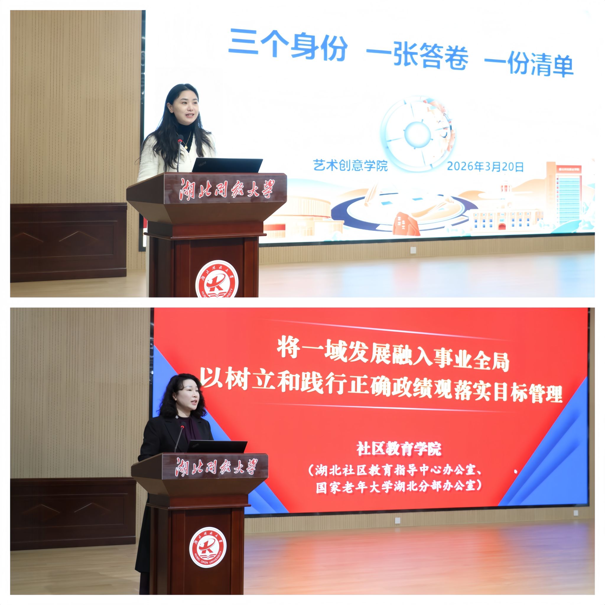 会上举行了目标责任书签订仪式,2025年度考核优秀代表单位艺术创意学院、社区教育学院负责人分别作交流发言,分享了目标管理工作中的实践经验与创新做法。周得力作目标管理工作报告,全面总结2025年工作成效,部署2026年重点任务。