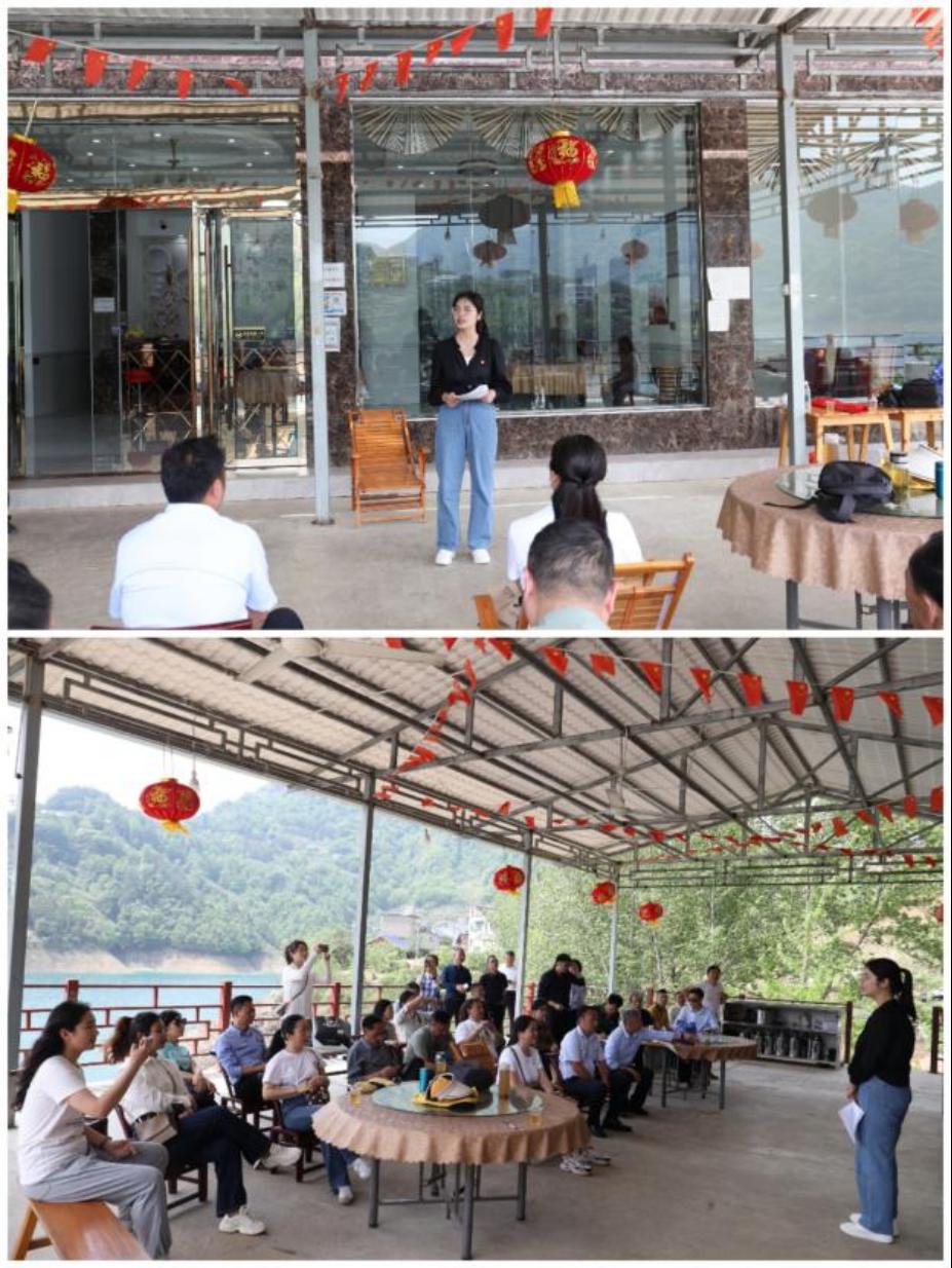 会上,全体党员重温入党誓词,学习习近平总书记关于实施乡村振兴战略的重要论述。青年教师贾雨以《铸牢中华民族共同体意识共建共享乡村振兴发展成果》为题进行思政课教学,她为大家介绍了与鸭子口村一江之隔的湖北省“大思政课”实践教学基地——武落钟离山的历史文化,并讲述了大力弘扬民族团结精神,坚持生态优先、绿色发展理念对长阳社会发展和乡村振兴的深刻影响。