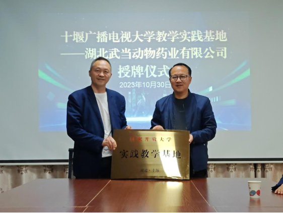 本网讯(通讯员 熊烨 文/图)10月30日至11月1日,国家开放大学(十堰电大分校)实践教学基地在十堰市五家涉牧单位(企业)挂牌,十堰电大副校长陈少国与市畜牧兽医服务中心副主任王秋实、工会主席程抱林共同参加了授牌仪式。