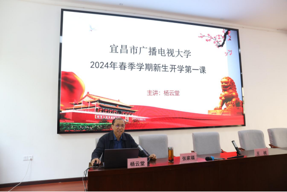 典礼前,全体师生奏唱国歌。杨云堂为新生讲授《开学第一课》。他对学校情况进行了详细介绍,并向新生宣讲了电大开放教育的学习特点。他寄语新生要尽快转变角色,力争做新时代的大学生,希望同学们都能在电大学有所获,实现人生理想,成就光辉事业。听完《开学第一课》,同学们纷纷表示对开放教育有了基本认识,也明确了学习方向,对未来充满信心。