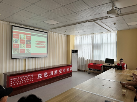 活动开始,应急救援系老师为社区物业工作人员做了社区居民消防安全培训。黄芳从我国建筑火灾形势、身边的“六类火灾隐患”和火场自救逃生要诀三个方面为社区物业工作人员作出了消防救援的理论知识讲解,加深了社区工作人员对火灾隐患的排查意识,增强了他们在火灾发生时的应急处置能力。