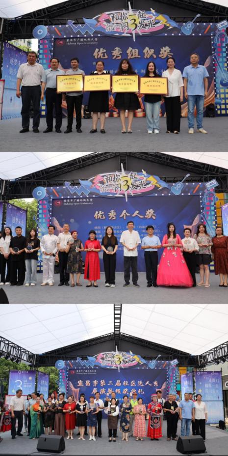 典礼上通报了宜昌市第二届社区达人秀“优秀组织奖”“优秀个人奖”“优秀团队奖”获奖名单,表彰他们在艺术、创新、传统技艺等方面的卓越表现。出席活动的领导为获奖组织、个人和团体颁奖。