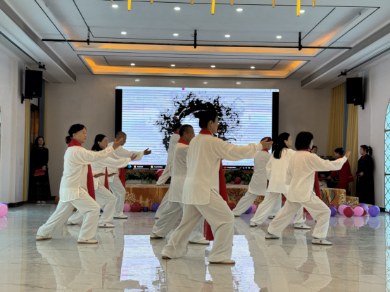 活动在印染社区的太极拳学员们的精彩表演中拉开帷幕。伴随着悠扬的音乐,学员们用刚柔并济的动作展现了太极拳的独特魅力。他们或独自表演,或成队演练,动作舒展流畅、韵味十足,赢得现场观众阵阵掌声。
