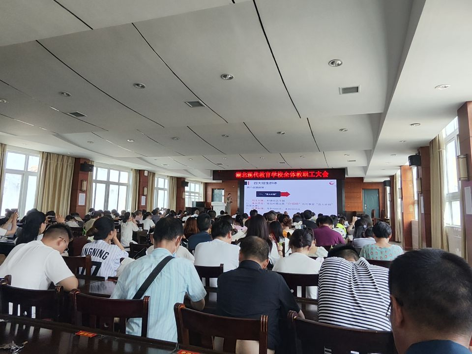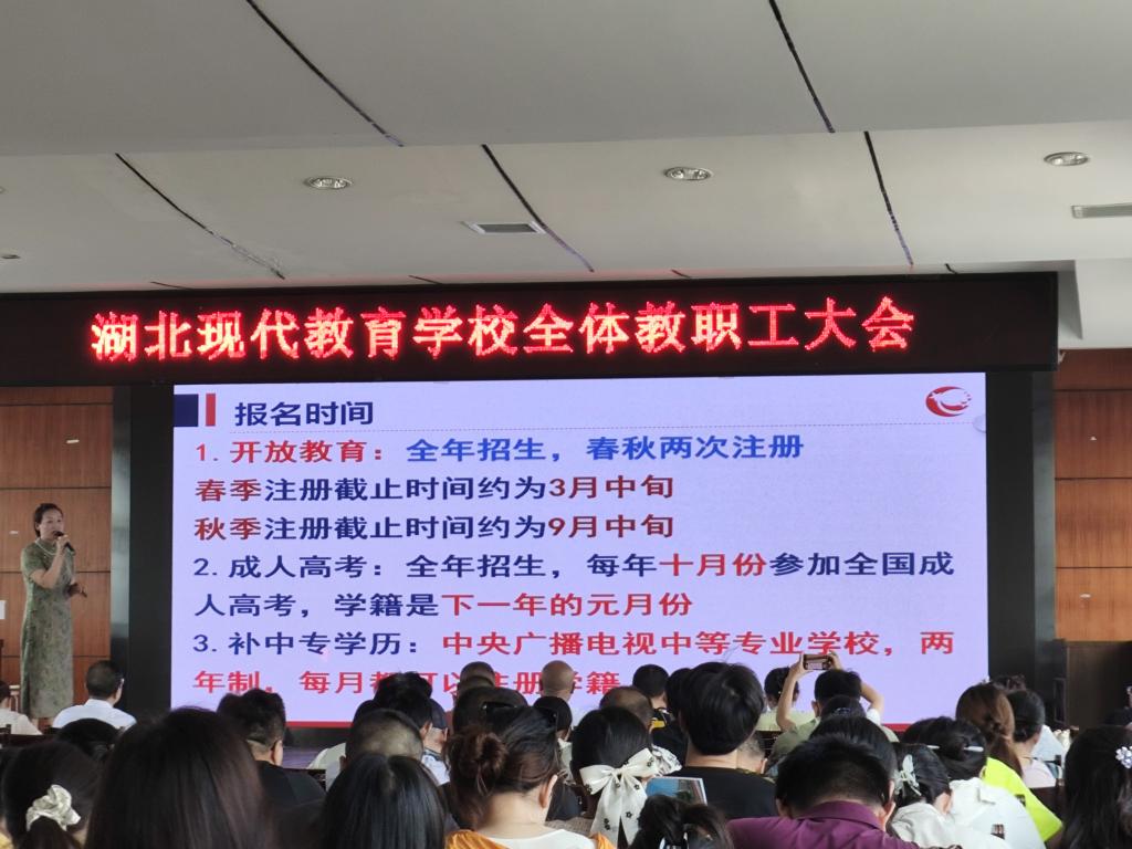电大工作处主任余海燕同志详细解读了2025年招生政策,重点推介了开放教育、成人教育、社区教育等特色项目,并指出:要充分发挥电大互联网+教育优势,针对在职人员、退役军人等群体精准宣传,让学历提升惠及更多学习者。 招生工作是学校发展的生命线,关乎办学规模与社会影响力。全体教职工要牢固树立“全员参与、责任共担”意识,以“三心”服务(耐心解答、贴心指导、暖心跟进)为抓手,将招生政策与随州地区产业需求、职业提升需求紧密结合,确保完成本季招生目标。
